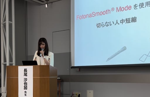 さらにセミナーでは、Fotona 6Dの最先端マシンを実際に使用し、長尾沙也加医師による実技が行われ、Fotona 6Dを使用する際の効果的な照射のポイントを公開。