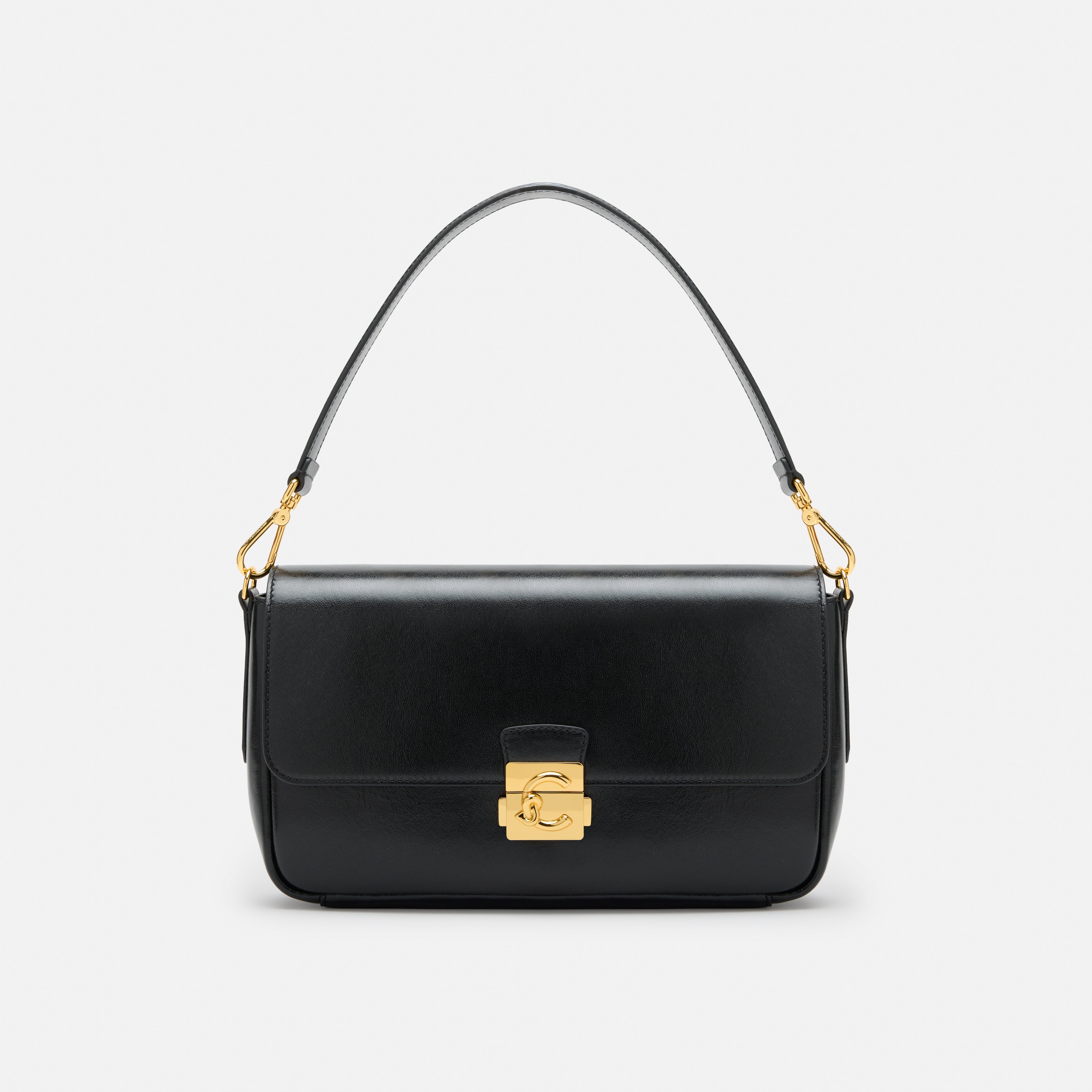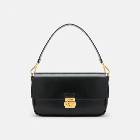 洗練されたミニマルなシルエットに、大胆でありながらも控えめな存在感を放つクロージャーディテールを組み合わせることで、バッグ全体に自信と強さを感じさせます。精巧に作り込まれたシャープなフォルムのロックパーツがデザインを際立たせ、力強い印象的を完成させています。