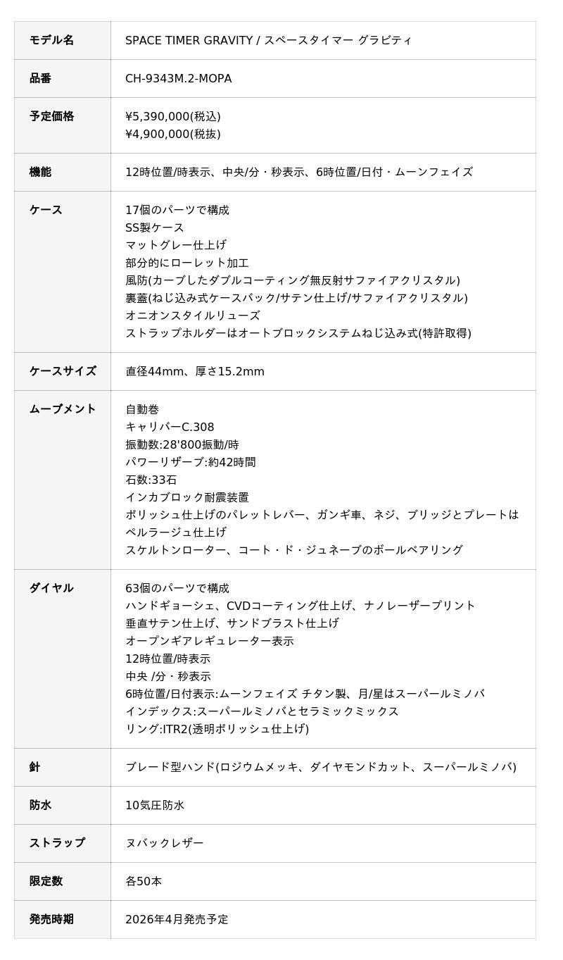 スイスの高級機械式時計「クロノスイス」は、「Space Timer(スペースタイマー )」シリーズより『Space Timer GRAVITY(スペースタイマー グラビティ)』という新作を全国の正規代理店にて発売します。
