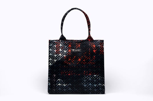 丸の内仲通りに掲出されたバナーフラッグを主な素材とし、権利や知的財産権の壁を克服するために施された「シークレット地紋」により、これまで活用が難しく廃棄されていたバナーフラッグ等を余すことなくアップサイクルしています。