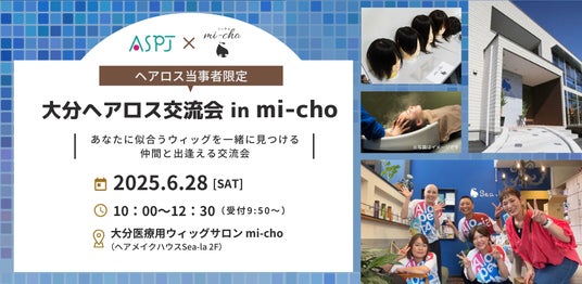 NPO法人Alopecia Style project Japan(ASPJ)は、ヘアロスに悩む方々とそのご家族に向けたイベント「ASPJ大分ヘアロス交流会 in mi-cho」を、2025年6月28日(土)に大分市のヘアメイクハウスSea-la内にある、ウィッグサロンmi-choにて開催いたします。