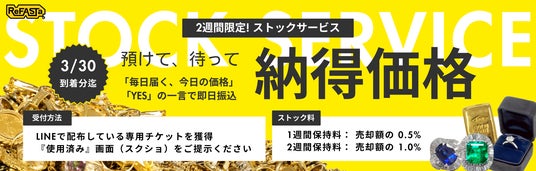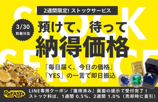 3月30日ご到着分までの期間限定、リファスタの「ストックサービス」