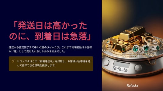 発送から査定完了までにかかる中1日~2日のタイムラグ。この間に起こる予測不能な相場変動は、これまでお客様が「運」として受け入れるしかない、宅配買取の大きな不便さでもありました。