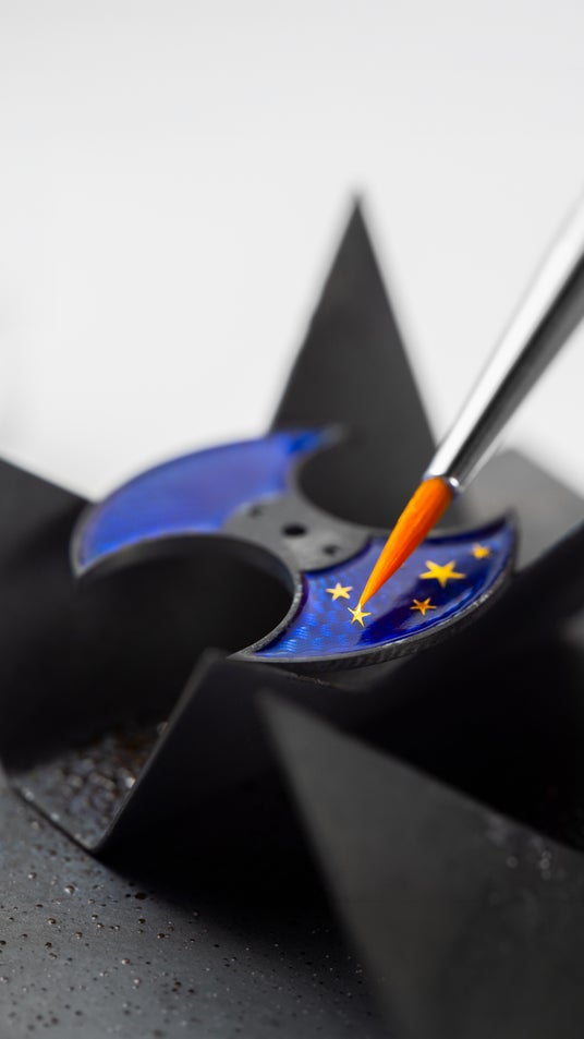 最後に半透明のエナメルでコーティングすることで、星々はガラスの中に浮いているかのように封じ込められ、その輝きを何世紀にもわたって保ち続けます。