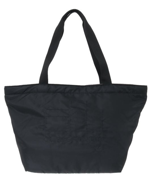 グラフィックが施されたナイロンバッグ。ボディには教会をイメージしてデザインされた線画モチーフの刺繍と、バッグのマチには教会を上から見たイメージで藤原ヒロシ氏が作り上げた総柄のグラフィックがプリントされています。中綿を入れ、MA-1と同じシリーズイメージで作製。日常使いしやすい中サイズのバッグ。