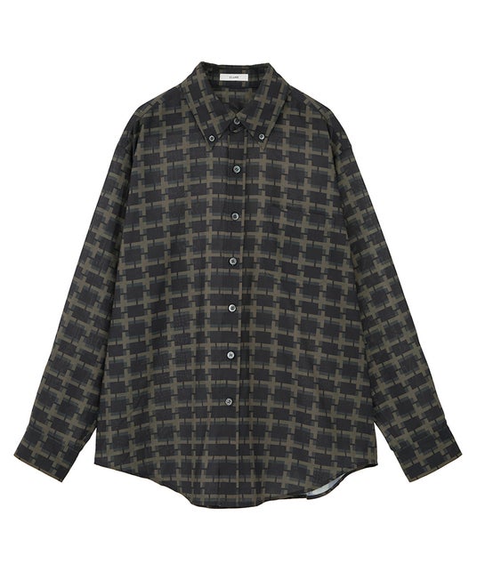 グラフィックがプリントされた生地を使用して製作したシャツ。ルーズシルエットで、前立てにはCLANEのサングラス掛けディテールが施されています。柄のイメージは、Clane (クレーン)という町に修道院などの遺跡がある事から、教会を上から見たイメージで藤原ヒロシ氏がデザインしました。同じシリーズのスカートとのSET UPスタイルもおすすめです。