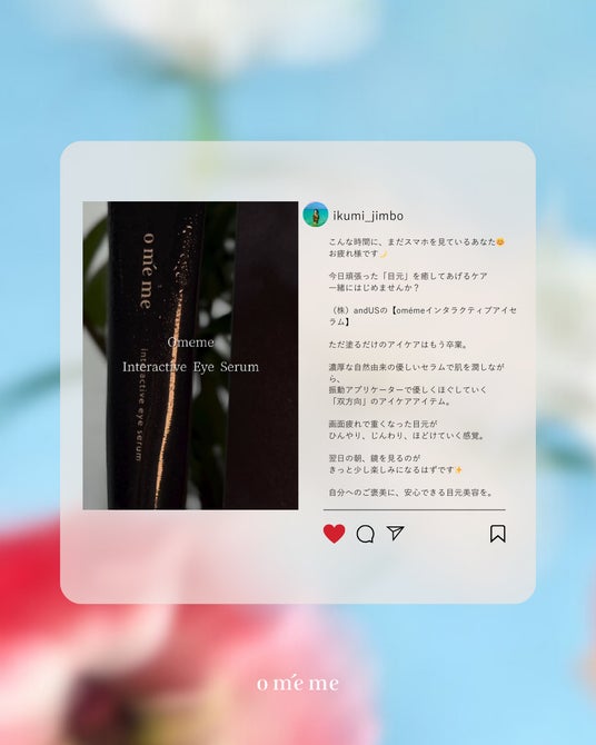 and US株式会社(本社:本社:富山県富山市、代表取締役社長:廣岡伸那)が展開するサロン専売コスメブランド「omeme」は、omemeシリーズのリブランディングを行い1周年を迎えました。これを記念し、日頃より「interactive eye serum」をご導入いただいている全国のサロン様を対象としたSNS投稿キャンペーンを開催いたしました。