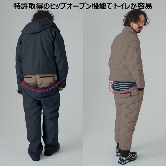 最大の特徴は、上着を脱がずにトイレを済ませられる特許技術「GRACE BACK(R)」です。