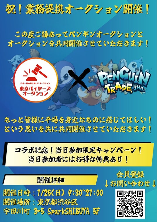 株式会社ペンギントレード(本社:東京都渋谷区、代表取締役:佐藤佑一、以下「当社」)は、合同会社Lifound(代表:西井健人、以下「Lifound」)と業務提携し、業者向けブランド品オークション「東京バイヤーズオークション」を2026年1月25日(土)より共同開催いたします。