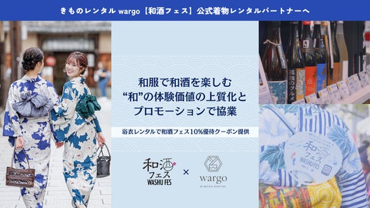 2025年7月開催の和酒フェス(大阪・東京)で協業をスタート。きものレンタル wargoの浴衣レンタル予約で和酒フェス優待クーポン提供
