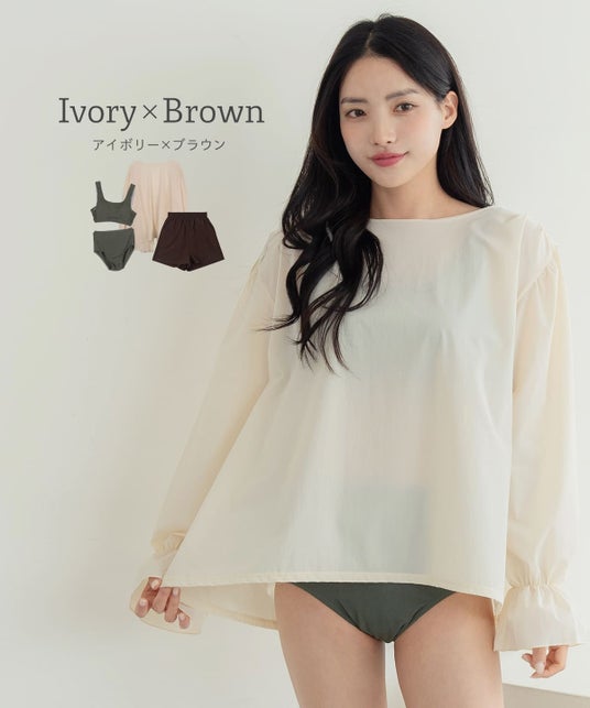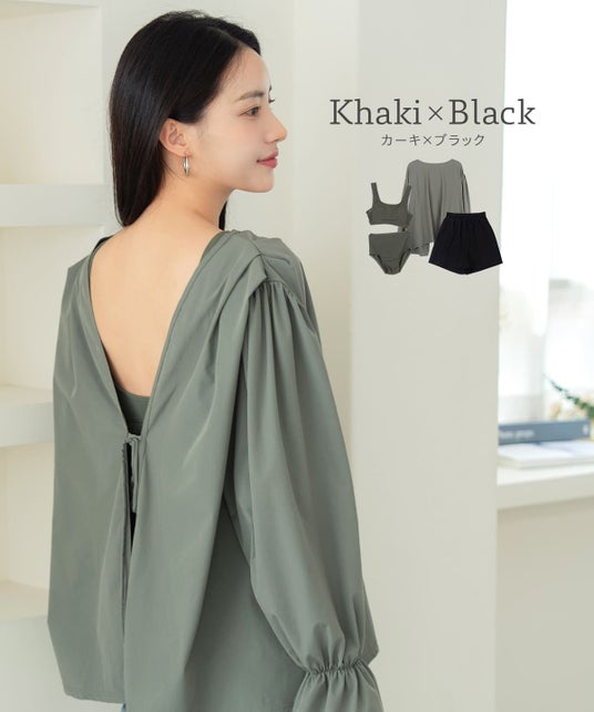 - ブラトップ・ショーツ・ショートパンツ・ラッシュガードの4点セットコーデに悩まず、1セットで“水際のおしゃれ”が整います。