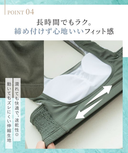 ノンワイヤー&ストレッチ素材で、ストレスフリーな着心地。