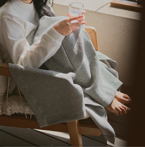 オーガニックコットンの柔らかさと吸水性、リネンの速乾性と耐久性を兼ね備えたワッフルクロス。滋賀県・琵琶湖の東、湖東地域は、室町時代から続く麻織物の産地。その伝統を受け継ぎながら、丁寧に織り上げました。サイズは、ハンドタオル、フェイスタオル、バスタオル、そして膝掛けとしても使えるハーフケットの4種展開。肌に直接触れるものだからこそ、素材と使い心地にこだわったアイテムです。
