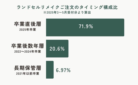2025年3月~5月に受付したランドセルリメイクでは、2025年3月ご卒業の方が全体の71.9%と最も高い割合となりました。
