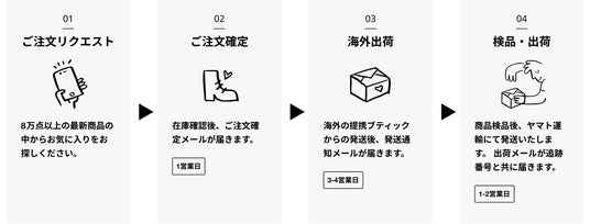 Stokでは、お客様にご注文リクエストをいただいたのち、在庫確認のためご注文確定まで1営業日ほどいただいております。日本語対応のカスタマーサポートが、配送状況の確認や不明点の解消をサポートいたします。