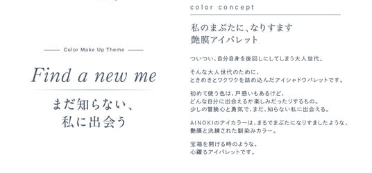 ン、ナチュラルオーガニックコスメブランド「AINOKI (アイノキ)」より、アイシャドウパレットの販売を開始いたします。(https://ainoki.net/)