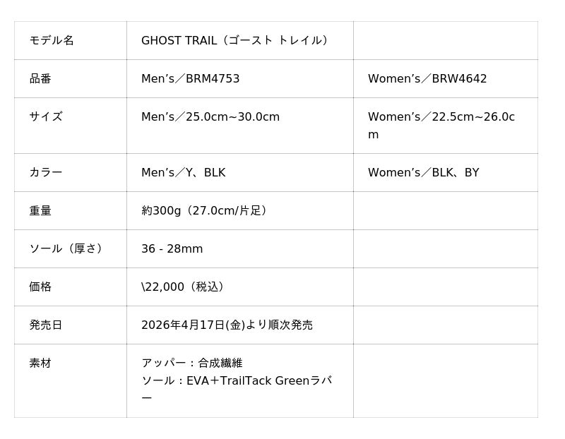 米国ランニングシューズブランド「BROOKS(ブルックス)」は、人気ロードモデル「Ghost(ゴースト)」シリーズの履き心地を踏襲しながら、トレイルにも対応した新モデル「GHOST TRAIL(ゴースト トレイル)」を、2026年4月17日(金)より発売いたします。