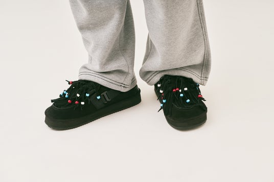 スウェードアッパーの柔らかな質感にアクセントを加えるビーズ