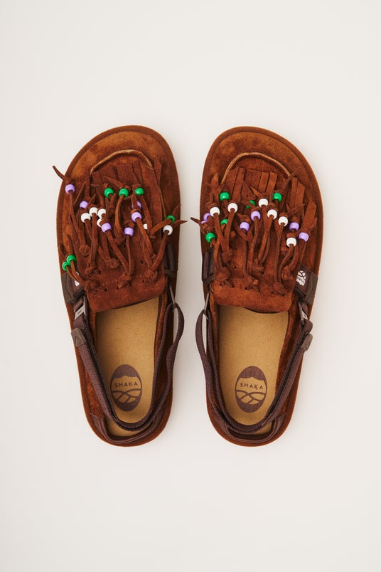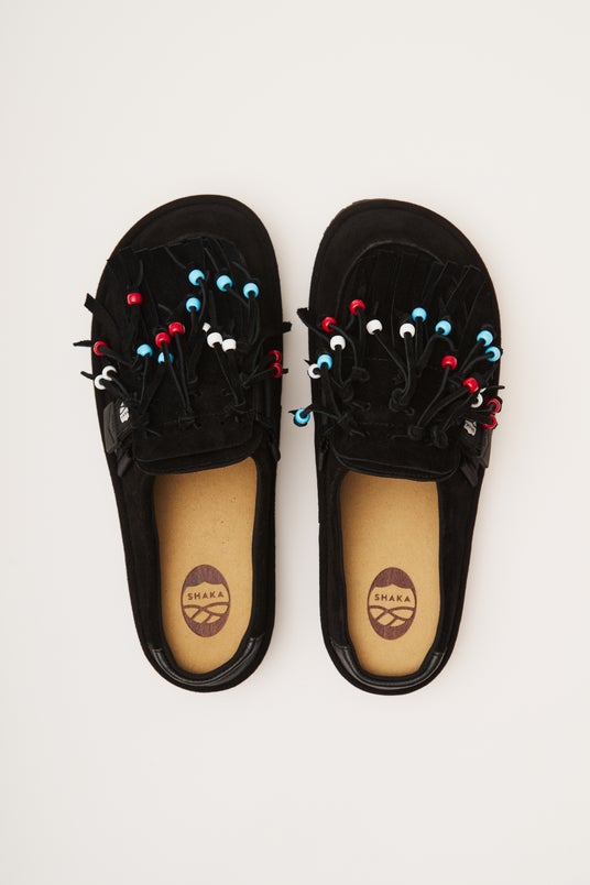 SHAKA公式オンラインストア・SHAKA POP-UP STORE限定でビーズフリンジパーツのみの販売も!すでに「MOC MULE TASSEL SUEDE」や「MOC MULE TASSEL COWHAIR」をお持ちの方はもちろん、アッパーにベルトがついているSHAKAの様々なアイテムにも取り付け可能!