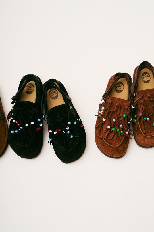 人気定番のMOC MULE TASSEL SUEDEに、ビーズをあしらったハンドメイドタッセルをプラスし、クラフト感とモダンなテイストを兼ね備えた一足にアップデート。