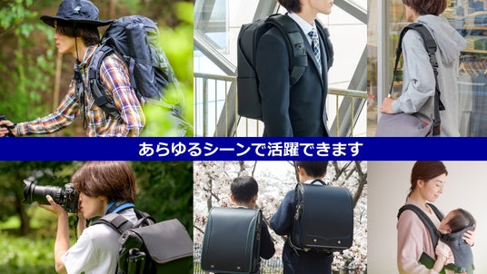 抱っこ紐に装着などママ・パパの負担軽減のみならず、通勤通学、マザーズバッグ、旅行用リュックなど多様な場面で活躍。