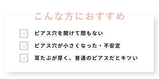セカンドピアスで穴の良し悪しが決まると言っても過言ではありません。今後のピアスライフのためにも、きちんとしたものを選びましょう。「もともとピアスホールは開いているけど油断すると穴がすぐ小さくなっちゃう」「耳たぶが厚くて、普通のピアスだとポストが短い」という方にもおすすめです!