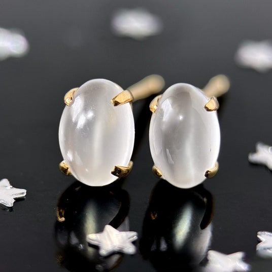 月光のような「シラー効果」と猫の瞳のような「キャッツアイ効果」をあわせ持つ、めずらしいムーンストーン。