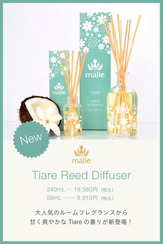 人気のTiareコレクションから、待望のヘアケアアイテム「シャンプー&コンディショナー」と、ブランドを象徴するルームフレグランス「リードディフューザー」が新登場。