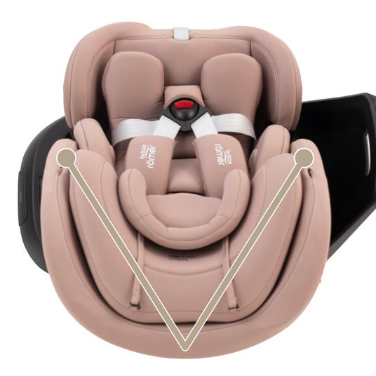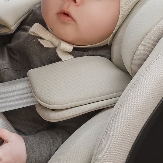 マルチリクライニング(165°フラット)状態に合わせて角度調整し、新生児も楽な姿勢をキープ。