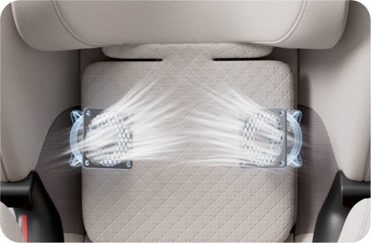 特に体温調節機能が未発達な乳幼児に配慮し”直接風を当てない空調”を目指し、シート全体に穏やかな空気の流れを生み出し、快適な座り心地を実現しました。