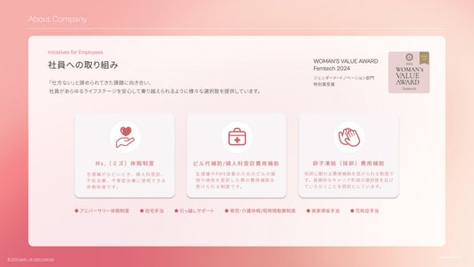 ・Ms.休暇制度(生理痛・婦人科受診・不妊治療・不育症治療などに対応)