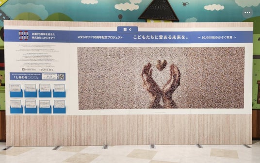全国の写真スタジオでも初めての試み「家族写真の無料撮影プロジェクト」の集大成として、10,000枚の家族写真をモザイクアートにして体験コーナーとともに大パネルの展示を行いました。