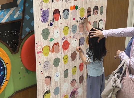会場では、子どもたちが自分や家族の顔を描いた似顔絵が多数掲示され、多くのご来場者から「温かい気持ちになる」「家族っていいなと改めて思えた」といった声が寄せられました。子ども同士が知らずに隣り合って絵を描き、自然と笑顔の輪が広がる光景が随所で見られ、展示スペースは想定を超える盛り上がりを見せました。