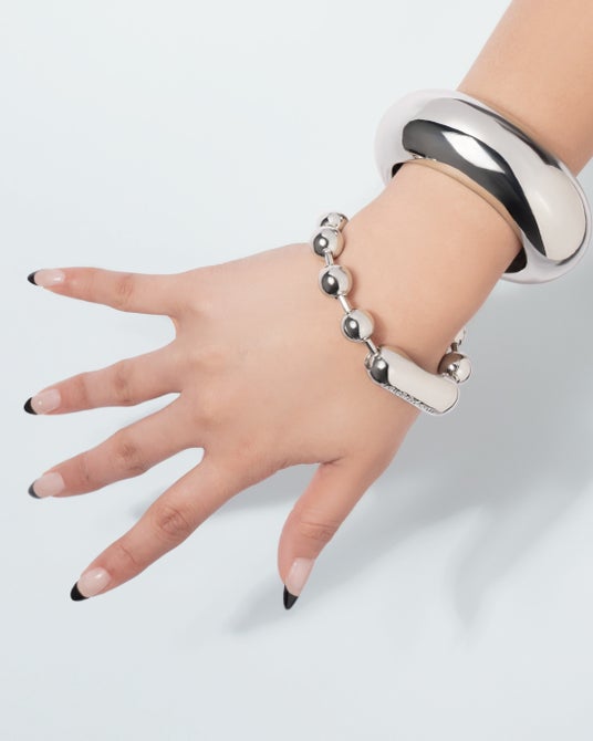 コレクションテーマの【PINCH OUT】の名の通り、拡大されたようなデフォルメされたボリューム感がインパクトフルなブレスレット。