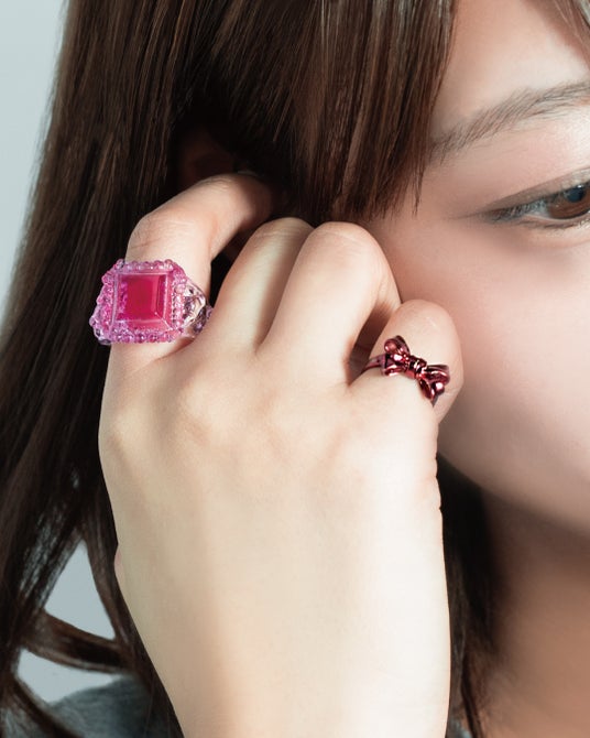 【e.m.】で長年愛され続けている「カレッジリング」を【LOVE BY e.m.】流に再構築した、カラフルでポップなリングが登場。