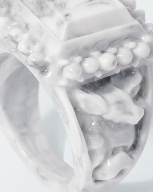 リング上部から色彩が滲み出るような着色にこだわったクリアカラー3色、ターコイズのようなマーブル模様を表現した2色の計5色展開。