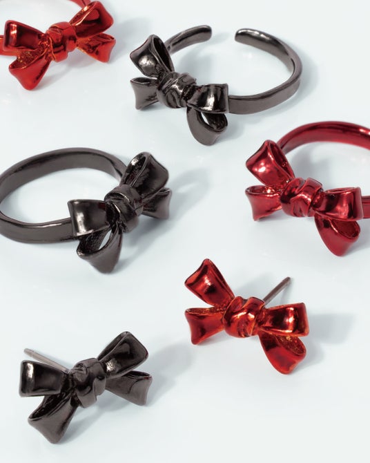 また、耳元を可憐に彩るリボンイヤーカフには、ピンクゴールドカラーとブラックの新色が登場。