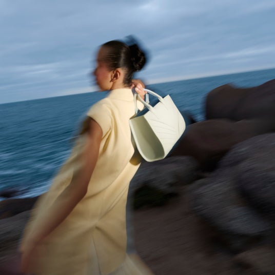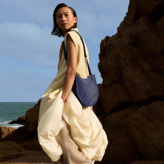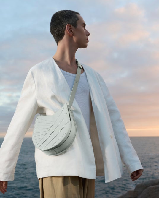 クリエイティブディレクターのクレア・オバディ-ラドリックスは、日出ずる国の美しい海が創る波の様子から得たイメージを、メゾンの象徴的なバッグのバランシエとミディに取り入れています。
