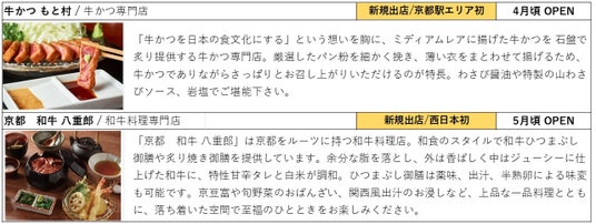 「牛かつ もと村」(京都駅エリア初) 「京都 和牛 八重郎」(西日本初)
