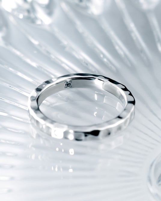 「青いもの」”Something Blue”を、誓いの指輪にそっと忍ばせるようにブルーダイヤモンドを密かにセッティングいたします。