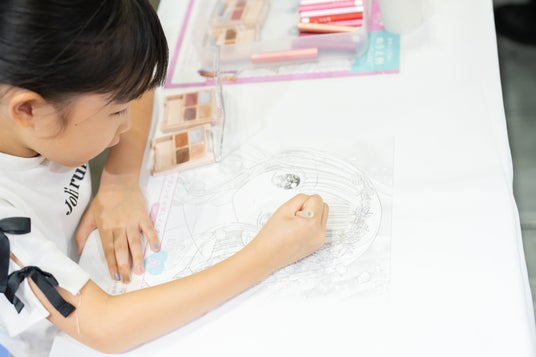 「メイクのお姫様」きたむらゆうか先生のイラストを使用した塗り絵アクティビティに、子どもたちは大喜び!思い思いの色を塗り重ね、自分だけの“理想のメイク”を完成させました。