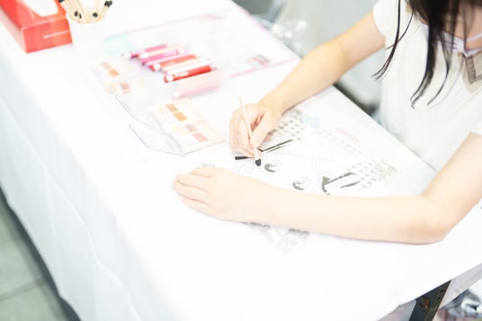 イベントの合間には、アイシャドウやリップの色を使った「メイク塗り絵」も登場。