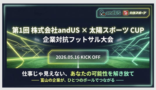 その第一弾として、2026年5月16日(土)に「第1回 andUS × 太陽スポーツ CUP 企業交流フットサル大会」をアイザックスポーツドームにて開催します。
