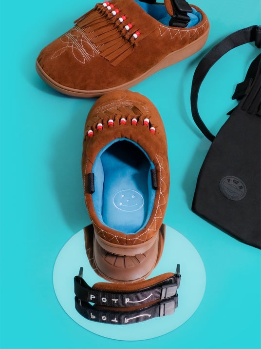 ネイティブアメリカンならではのフリンジや刺繍、ビーズを施し、フットベッドにはPOTRを象徴するターコイズブルーを採用しました。