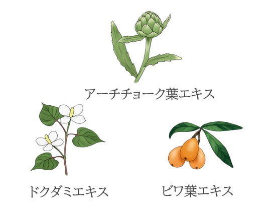 毛穴の悩みをケアするため、和漢植物をはじめとする3種の植物エキスを配合しています。 (すべて引き締め成分)