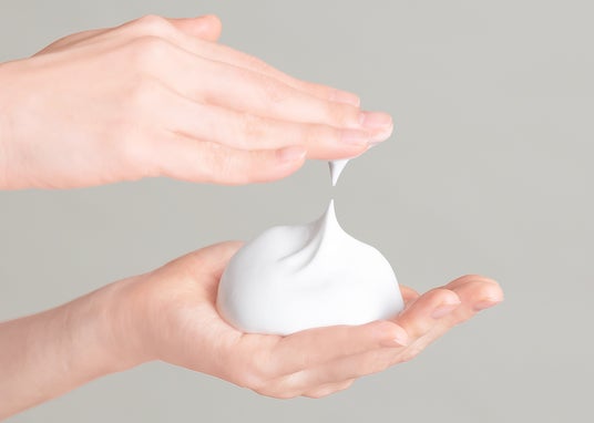 手と顔をぬらした後、手のひらに適量(2cm程度)をとり、少量の水またはぬるま湯を加えながらよく泡立てます。洗顔後、水またはぬるま湯で十分に洗い流します。