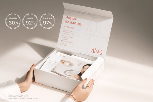 「ANS.」は、自宅で叶うオンライン美肌治療サービスです。スマホ一つで医師によるオンライン診療を受けていただき、ユーザー1人ひとりの肌悩みや目指したい肌に応じたお薬や基礎化粧品、サプリメントを、毎月ご自宅にお届けするのが特徴です。