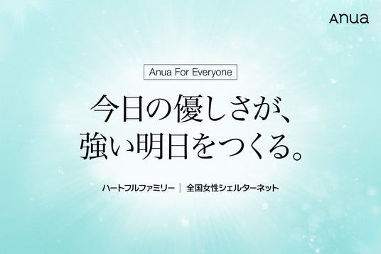 株式会社The Founders JAPAN(本社:東京都港区)が展開する、グローバルスキンケアブランド「Anua(アヌア)」は、「優しく。強く。」というブランド理念を社会に広げていく新たな取り組みとして、社会貢献活動「Anua For Everyone」を始動しました。本プロジェクトは、年齢・性別・環境にかかわらず、「すべての人の肌が守られるべきである」というAnuaの想いを軸に、 社会課題への理解を深めながら、より良い形での支援のあり方を検討するものとなります。