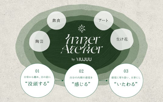「Inner Atelier by MUJUU」は今後も定期開催を予定しており、飲食、アート、ウェルネスなど、さまざまなジャンルの専門家を迎えながら、五感を通じて“自分を癒す時間”を提供するラインナップを展開予定です。