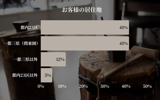お客様の82%が都内23区または一都三県(関東圏)に集中しており、地域的に首都圏を中心とした需要が高いことが示されました。都内23区以外(5%)よりも一都三県以外(12%)からの来店が多い結果になりました。
